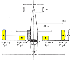 Thanks for the question. You have a good point, as the PA-28 Hershey bar wing chord is common across the PA-28R Arrow and PA-28 Cherokee variants prior to the tapered wing. Plus, the PA-28-235 and the Cherokee 6 have two 17 gallon tip tanks for a total of 84 gallons.